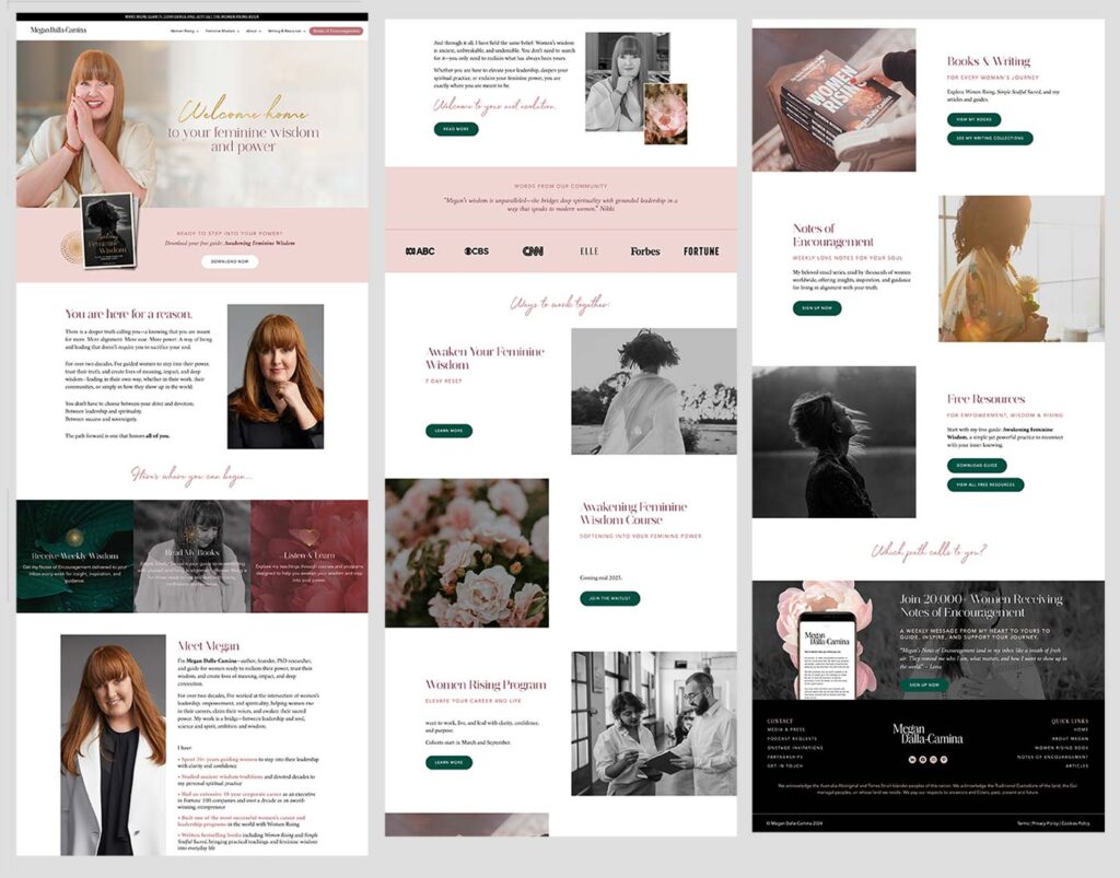 Megan Dalla-Camina’s site blends the Sage and Caregiver archetypes — offering wise, compassionate guidance through elegant design, empowering language, and a calm, mentoring presence for personal transformation.