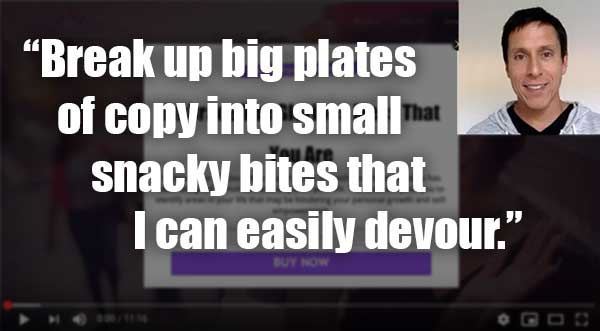 - Make clear paragraph separations so that it’s easier to read. As it is, much of the copy is big blocks and centered text which is awkward to look at, for me. I resist reading it.