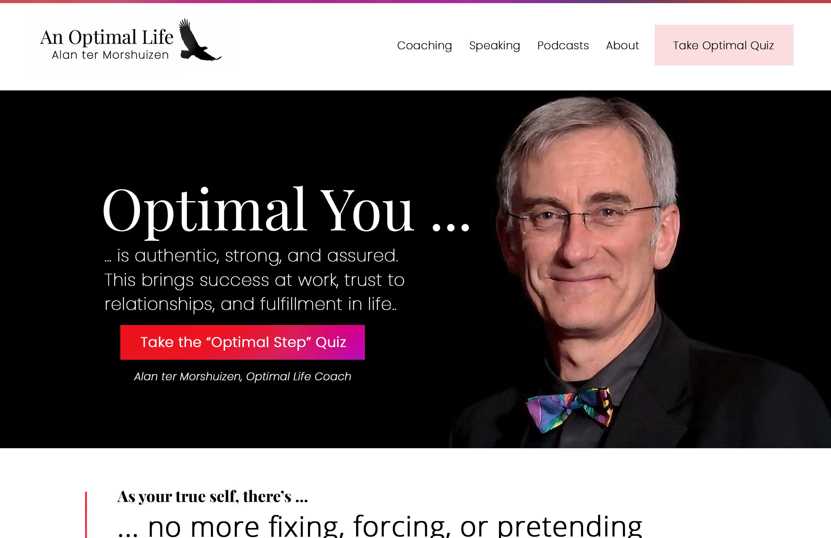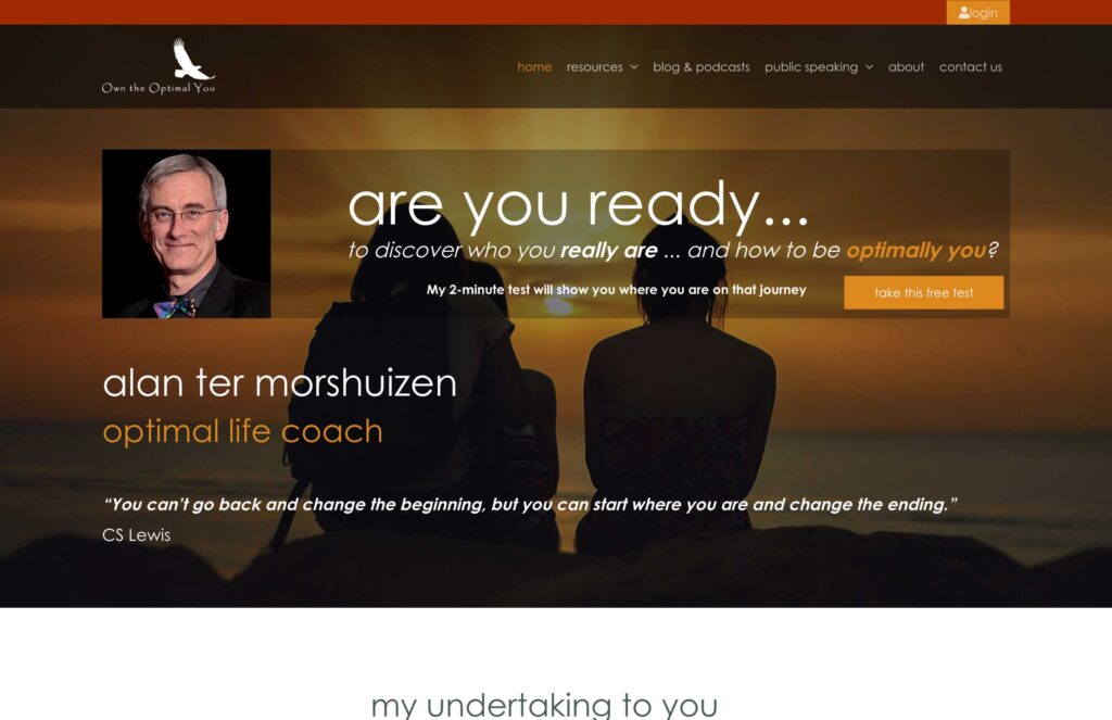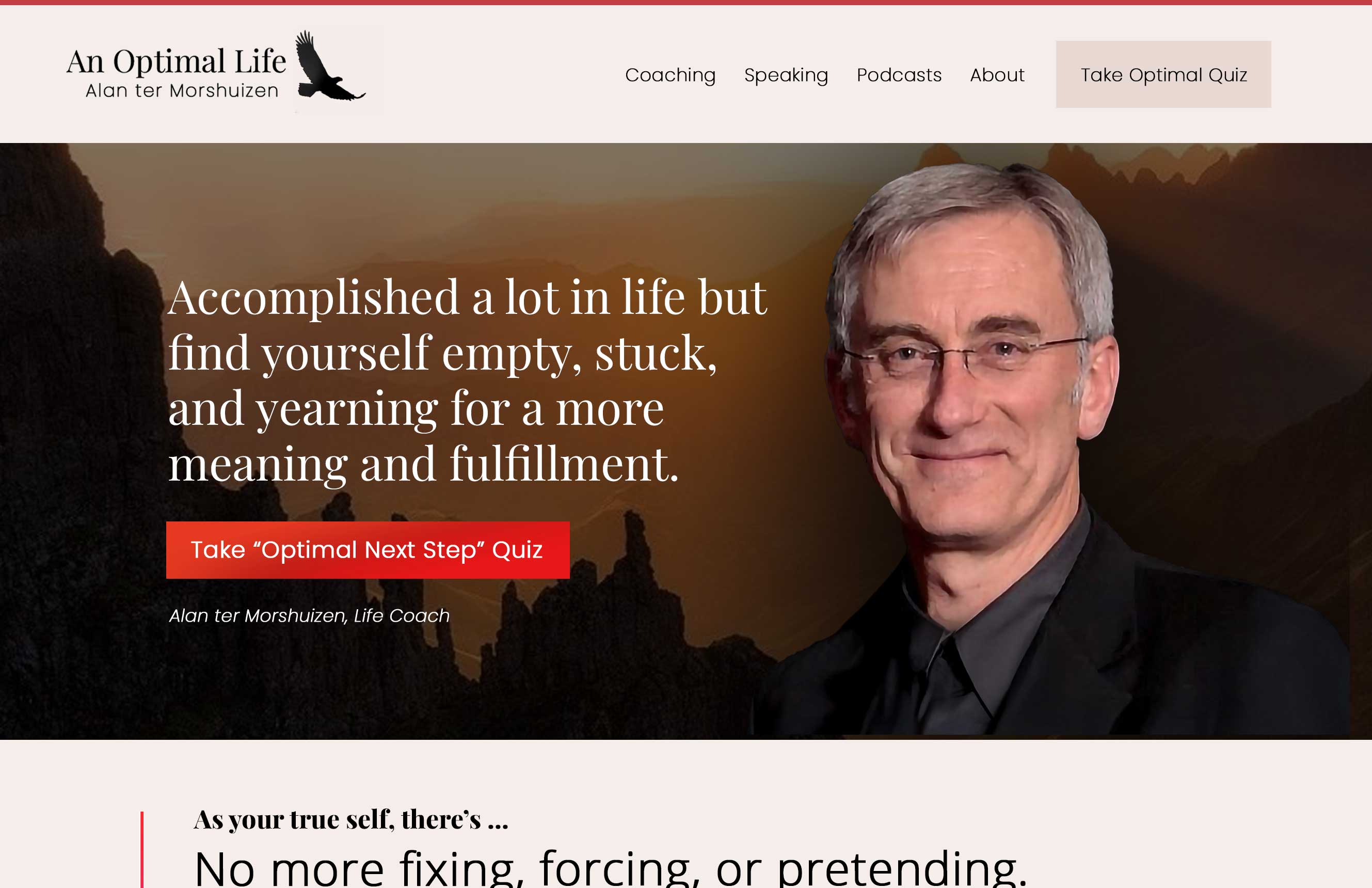 Alan Ter Morshuizen (AnOptimalLife.com) has a solid foundation, but his homepage hero section felt too scattered and generic. His brand is about clarity, strength, and authenticity — yet the top of the site wasn’t showing that.