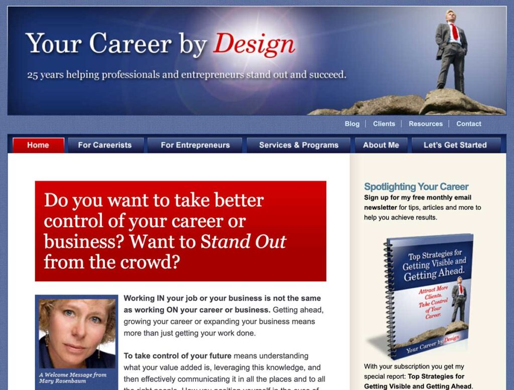 In this example, Mary, a branding coach, helps both employed professionals and entrepreneurs brand themselves for success.